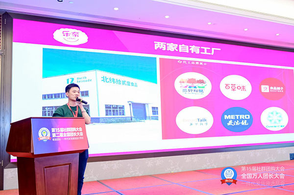 第2届全国团长大会TO50特装企业:赞助商乐奈食品,馆王美图-美即刻,以及京时椰汁,海岸无限,湖南天味,森木尚,吸引力联盟,佛山迈爱福,鲜尝厚买,野小兽,森尚,元和恒泰,奥丁供应链,米柔喜,九只小梨,越远熊追不舍,东子优品,MOBEE,富盛酒业,尚选优品,她研社,星芙,荷田田图书,小矮人供应链,巨威供应链,苏州湖畔,易中易,百想国际,S’YOUNG,康富来,湖南博米汇,古方®红糖,谷百兮,轻元素,上海有裕供应链,熊爸爸可思美,莱克电气绿能科技,SMILEY,浙江启好电子,玖熙名品,荷美尔,沐光诚品,杭州一波王炸,上海裕霖实业,罗来雅,头等椰,杭州英奇科技,藏兮,德益丰供应链分别上台介绍了自己的品牌和产品。