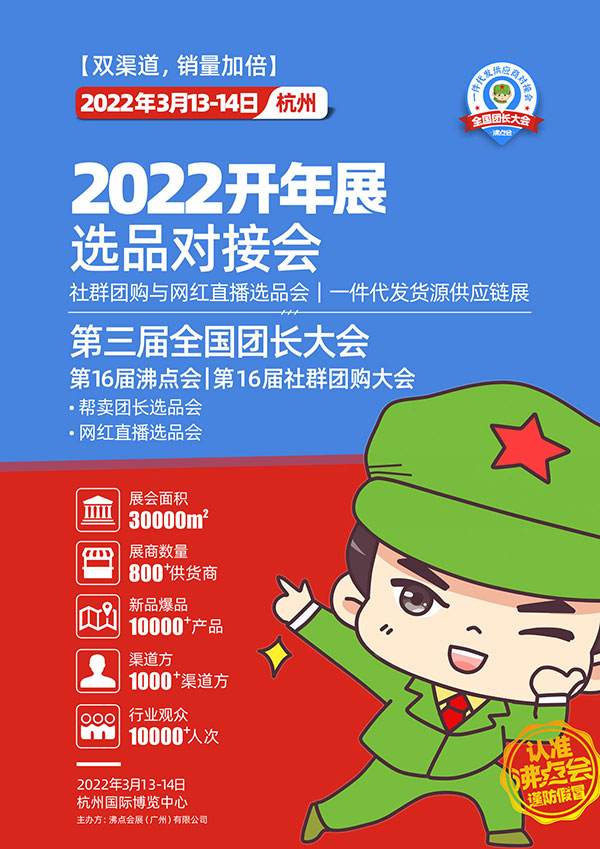 从2022开年展目前正在火热招展中,很多生产企业,供应链和品牌方都在积极参与,一次参展,拓展团购和直播两大赛道,想要在新渠道实现新增长的,2022开年展暨第3届全国万人团长大会,你一定要来。
