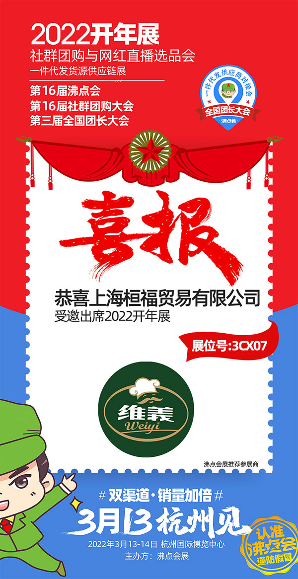沸点会展(广州)有限公司主办的2022开年展暨第16届沸点会(杭州)供应链展、第16届社群团购大会、社群团购与直播选品会、第三届全国团长大会&一件代发货源对接会,新渠道大会/新渠道展系列活动将于2022年3月13-14日在杭州国际博览中心隆重举办,聚焦双渠道、销量增长加倍。