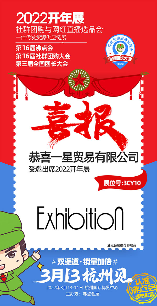 由沸点会展主办的2022杭州团长大会将于3月13-14日在杭州国际博览中心隆重举办,一次活动链接上美食、美妆、母婴、零食、服装、百货、小家电、特产生鲜等各类适合社群团购和直播电商的一件代发一手货源。届时,福州一星贸易有限公司自有品牌Exhibition览物馆饰品受邀参展。