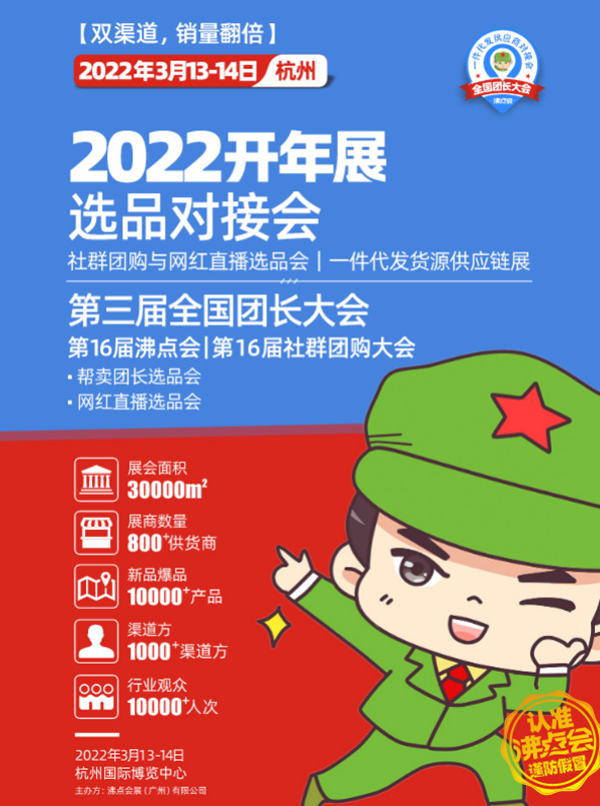 2022年3月13-14号的第3届全国万人团长大会,有上万款产品将在现场展出,试想想,对于团长而言,这又是多么好的卖货机会呀。