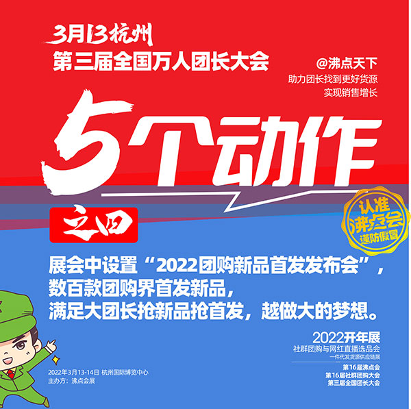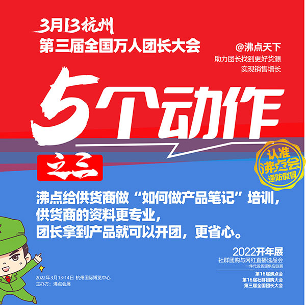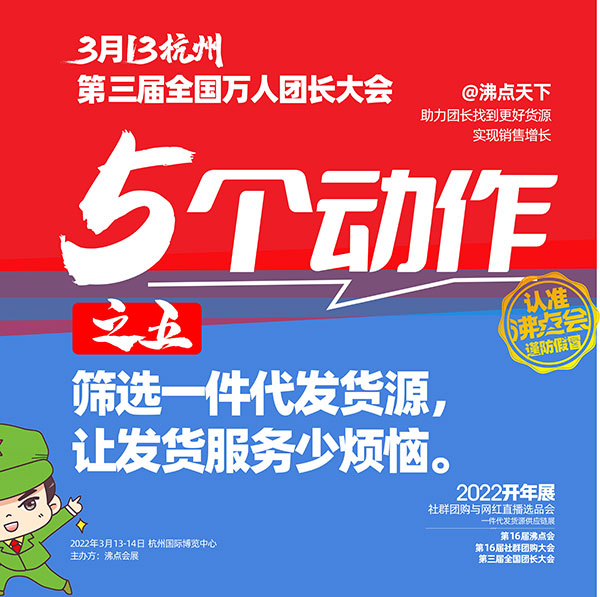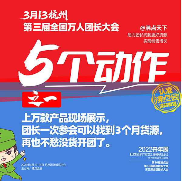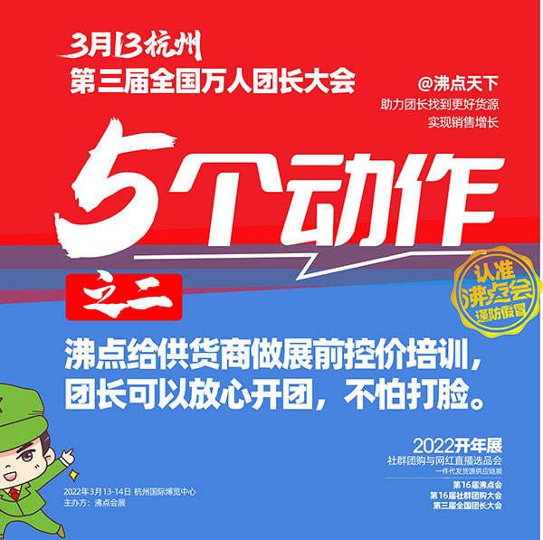2022年3月13-14号,第3届全国万人团长大会,沸点天下将做如下5个动作,助力团长找到更好货源,实现销售增长!