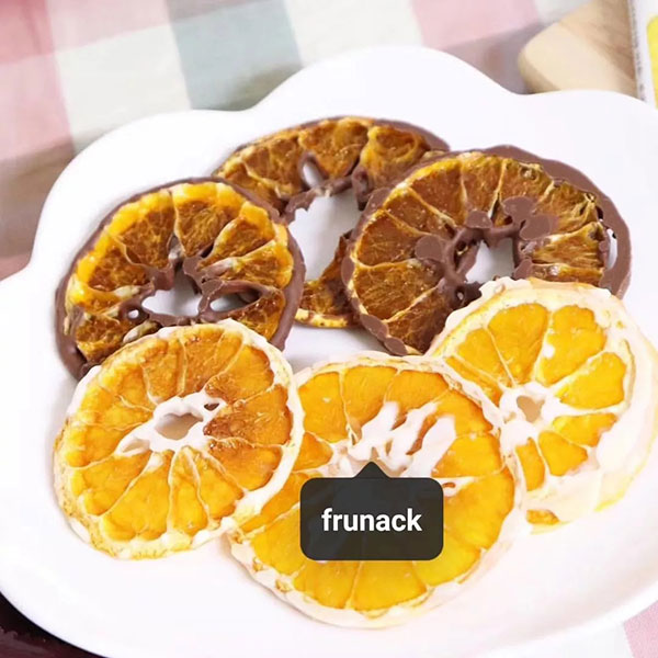 安全无添加食品是这个时代的需求,从工厂设计阶段就严格按照HACCP认证进行,所以在工厂完工的同时即获得了HACCP认证。FRUNACK巧克力橘子片,让人充分享受到柑橘特有的酸甜清爽,FRUNACK的理念就是用匠心精神生产出超越天然水果味道的新概念健康零食。
