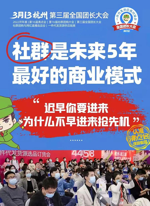 3月13-14号,第3届全国团长大会,社群界头部的平台和团长都将出席,并且现场选品。如果你是保健养生类产品的供货商,想要链接平台和团长,欢迎参加本次大会,现场对接资源,实现销售增长。