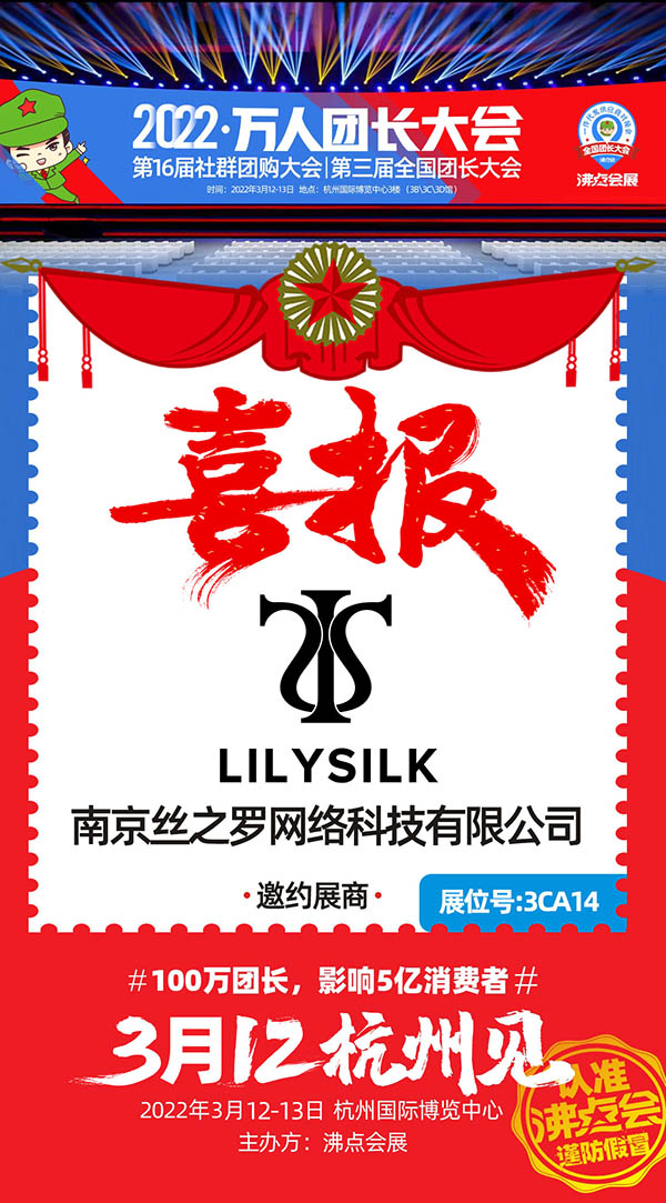 Lilysilk此次参展想借助沸点这个平台拓展国内市场,为国内顾客带来品种更全,质量更好,服务更优的丝绸产品。如果你想和Lilysilk达成合作,请于2022年3月12-13日前往杭州国际博览中心3CA14展位,合作双赢。