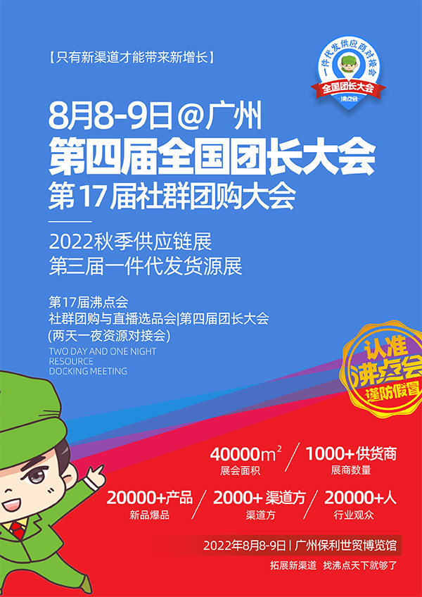 2022第17届社群团购大会、第4届全国团长大会将于8月8-9日,在广州保利世贸博览馆举办。