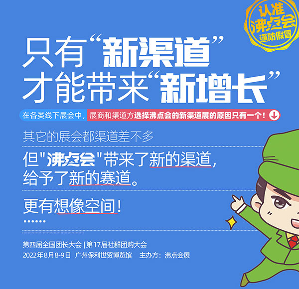 沸点会展通过精细化组织、专业化运作、贴合买方或卖方的真实需求,全力打造社群团购领域一站式展示交易平台。助力企业“链接新渠道,带来新增长”,这句话是沸点会创办的初衷,沸点会展也一直围绕这个初衷优化环节。