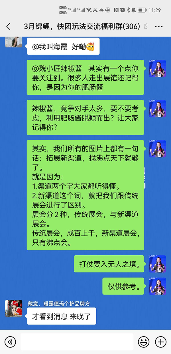 在3月锦鲤活动群里,勇哥有邀请团长进群,并在群里做分享与答疑。