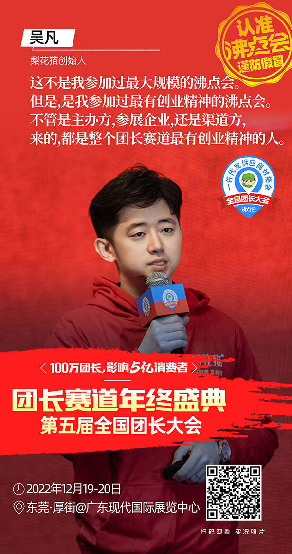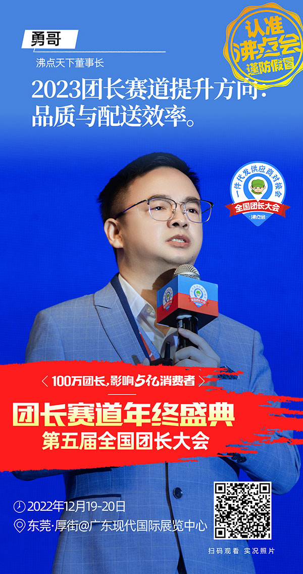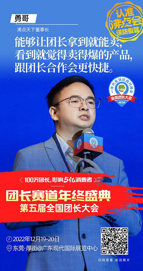 由沸点会展举办的第五届全国团长大会暨东莞团长大会,12月19号在东莞现代国际会展中心成功举办。本次东莞团长大会共分"新品爆品首发路演","沸点之夜资源对接晚宴","一件代发货源展","社群电商趋势大会",以及"团长选品对接会"5大环节。