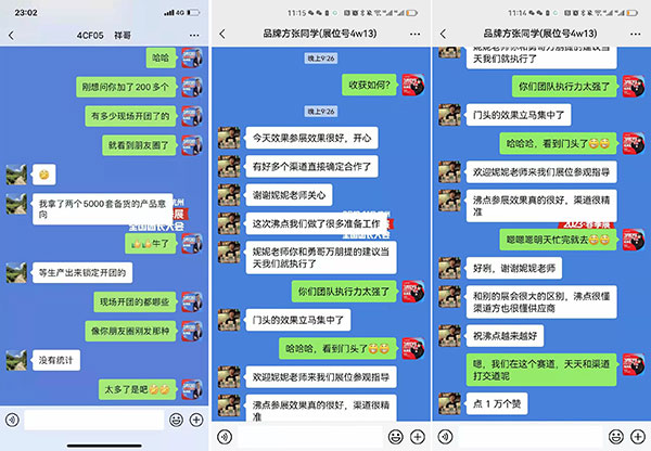 很多展商反馈,沸点的一件代发货源展资源太好了,今天在走访展商时,很多展商反馈已经加了几百个渠道;还有不少供货商反馈昨天已经有不少团已经开团了。