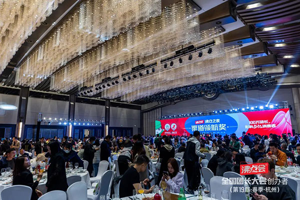 此次杭州全国团长大会,仅沸点之夜晚宴环节就有145桌,整个会场热气腾腾。主办方沸点天下在每一桌都有安排团长,方便大家交流链接,有些企业分工明确的更是通过沸点之夜一次就能加到头部平台和头部团长,为后续的推品合作奠定了基础!