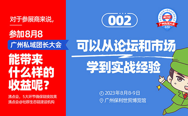 所以,参加沸点会,8月8广州私域团长大会,你都会学到非常多的实战经验。