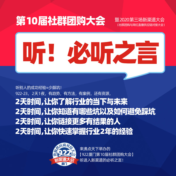 既然渠道拓展是必经之路,那就来【922厦门第10届社群团购大会】