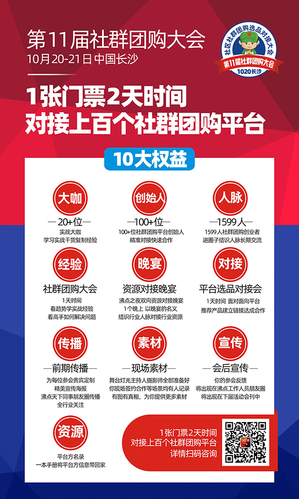 欢迎更多朋友,前来参加,10月20日长沙第11届社群团购大会暨平台选品对接会。