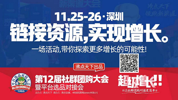 11.25至26号,深圳第12届社群团购大会暨平台选品对接会,想要快速链接资源,想要学习实战经验,想要获得高速增长的你,一定要来!
