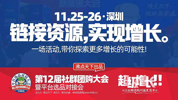 基于以上几个原因,2020年11月25-26号,在深圳举办的第12届社群团购大会暨平台选品会,将会是产品众多,品类丰富,平台聚集的又一场行业盛会。
