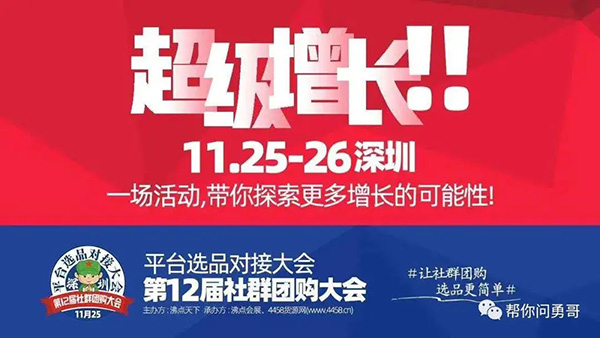11月25-26号,深圳第12届社群团购大会,10+位大咖在现场让你复制成功经验;与1000+社群团购创业者同行,实现超级增长!