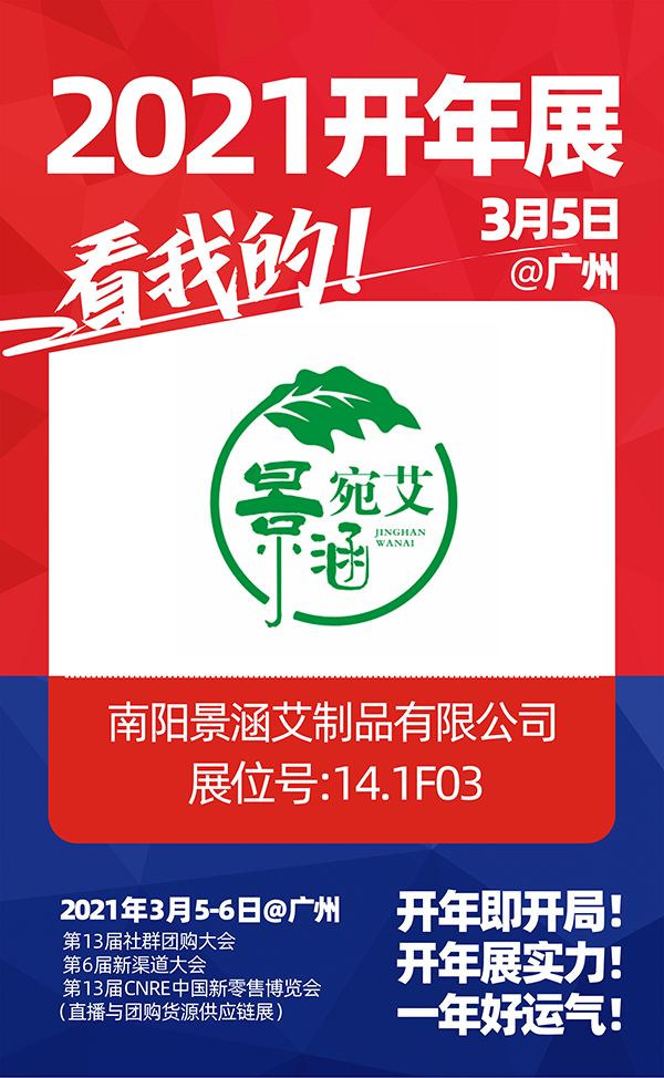 2021年南阳景涵艾制品有限公司将与沸点天下携手共赢,开年展实力,一年更顺利!2021供应链开年展,南阳景涵艾制品有限公司与你相约广州广交会馆,不见不散!