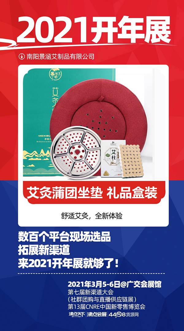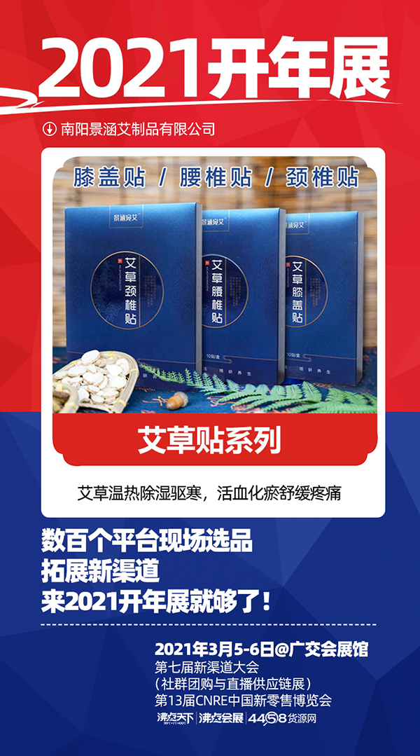 2021年3月5日-6日,备受瞩目的2021供应链开年展 ——““2021第七届新渠道大会(社群团购与直播小家电供应链展)、第13届CNRE新零售博览会”将在广州广交会展馆盛大举行。本届展会由沸点天下、沸点会展和4458联合举办,南阳景涵艾制品有限公司受邀出席本次展会。