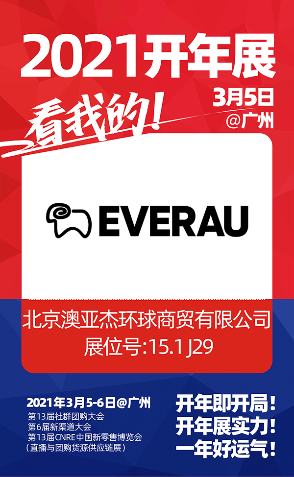 EVERAU是沸点的老参展商了,加上2021的开年展,已经是第二次参加沸点的活动,旨在通过沸点这个平台,可以更快捷地寻找更合适的合作方。3月5-6号,2021社群团购供应链开年展,EVERAU与你相约广州广交会馆,不见不散!
