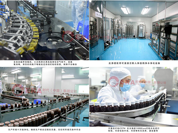 时代(中国)集团有18年口服液研发及生产经验,建成3个大型现代化工厂,南北方生产基地合计超8万平米,口服液日生产能力在80万瓶。拥有中、日、韩等地5个高级研发中心及实验室:时代健康研究株式会社、时代活性多肽研究所、时代研发中心、时代特殊用途医学食品实验室、广东时代食品与生命健康研究所。