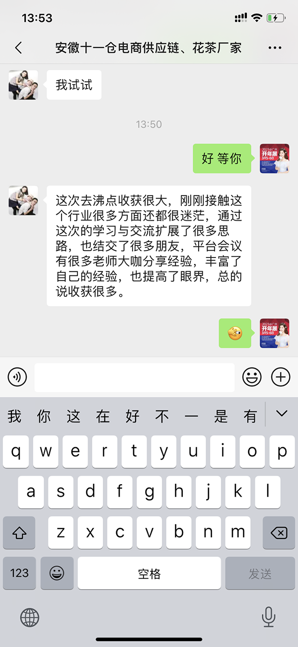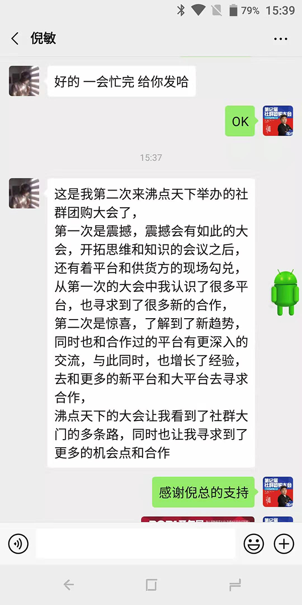 沸点天下的大会让我看到了社群团购大门的多条路,同时也让我寻求到了更多的机会点和合作。