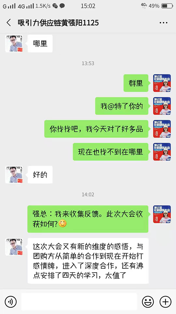 @吸引力供应链黄强阳:这次大会又有新的维度的感悟,与团购方从简单的合作到现在开始打感情牌,进入了深度合作,还有沸点天下安排了四天的学习,太值了。