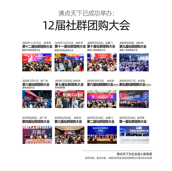 沸点天下已经成功举办了12届社群团购大会,本次2021春季社群团购供应链展,被很多业内人士称为行业的分水岭,有很多人预测这次大会后,整个行业的格局将会有非常大的变革。