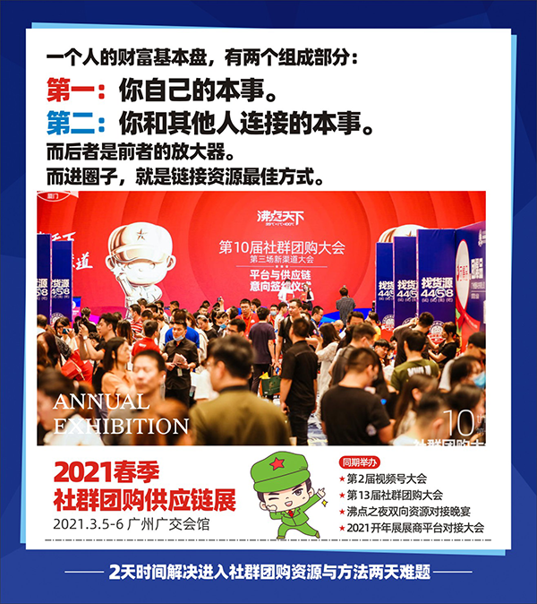 今天小编就为大家详细解读一下为什么2021春季社群团购选品会会成为众多企业选择卡位社群团购赛道的新春首站。