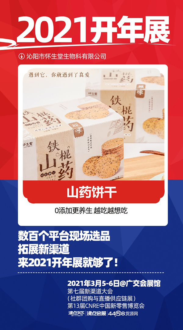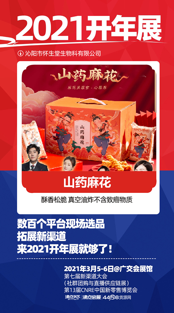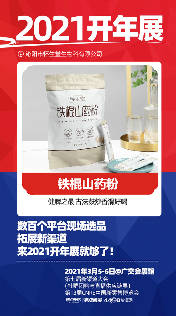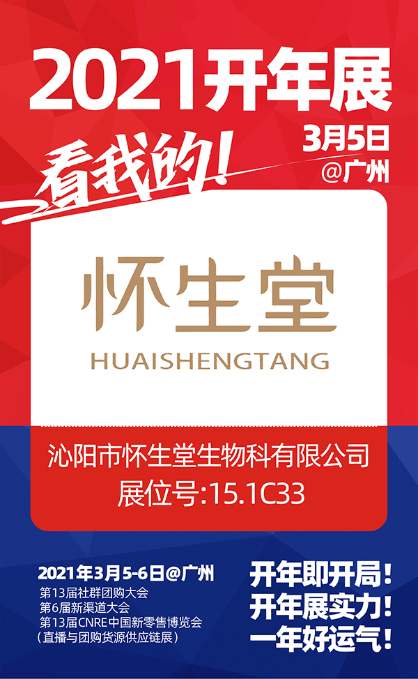 2021社群团购供应链开年展由沸点天下、沸点会展、4458货源网联合举办,本次展会以“新渠道加速新增长”为主题,定于2021年3月5日-6日在广交会展馆召开,沁阳市怀生堂生物科技有限公司(以下简称:怀生堂)受邀参展本次展会!