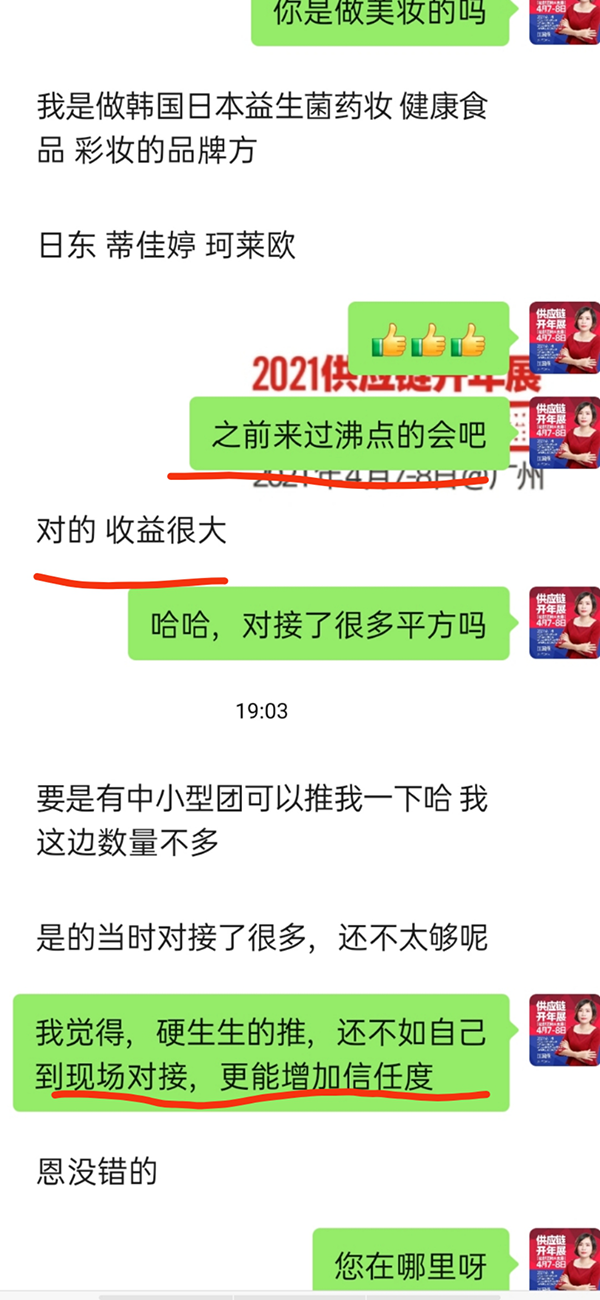 另外,随着沸点天下线下展会,线上4458货源网,以及全网布局,新渠道的渠道方,以及货源方几乎都聚集在沸点天下周围,所以想要拓展渠道,想要链接资源,通过沸点天下总能找到你想找的人。