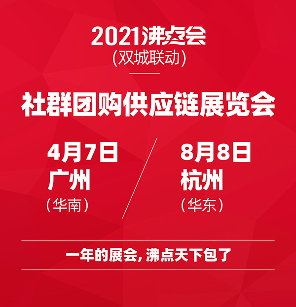 2021供应链展览会是沸点天下创办的,旨在为社群团购和直播领域渠道方提供更多货源合作资源的展会。