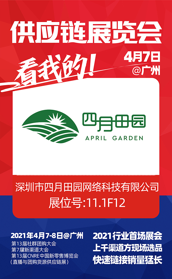 4月7-8号,2021社群团购供应链开年展,深圳市四月田园网络科技有限公司与你相约广州广交会馆,不见不散!