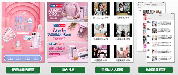 2018年与德国BWT,合作150+头部自媒体KOL深度种草,覆盖微信公众号、抖音、淘宝、微信社群、线下KA、线下母婴等500+合作渠道,KOL单场团购销售额最高260W+,累计各类渠道销售额3000W+。