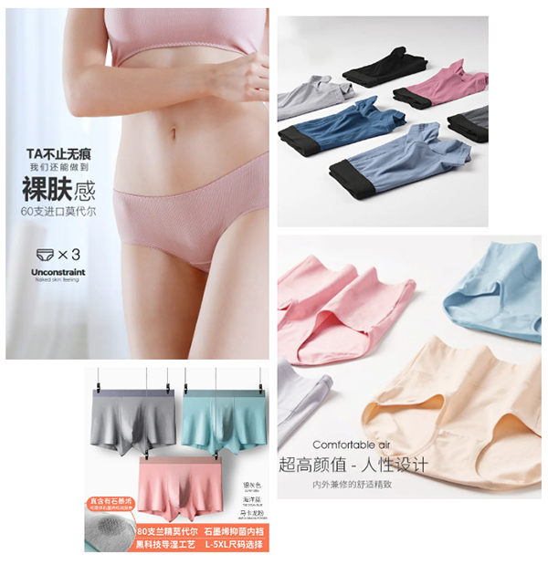 专业研发生产内衣裤袜,多个系列产品适应市场;纯棉、彩棉、花纱、冰丝、莫代尔等多种面料,配合不同的特殊工艺手法技术,传统车缝工艺、无痕粘合热压技术、随心裁无工艺技术,适应不同人群需求喜好与体验不同的舒适;并配备特殊功效材质,银离子蜂窝抗菌、100%纯棉物理抗菌、紫外线蜂窝抗菌、天然桑蚕丝面料、石墨烯等适应市场需求;