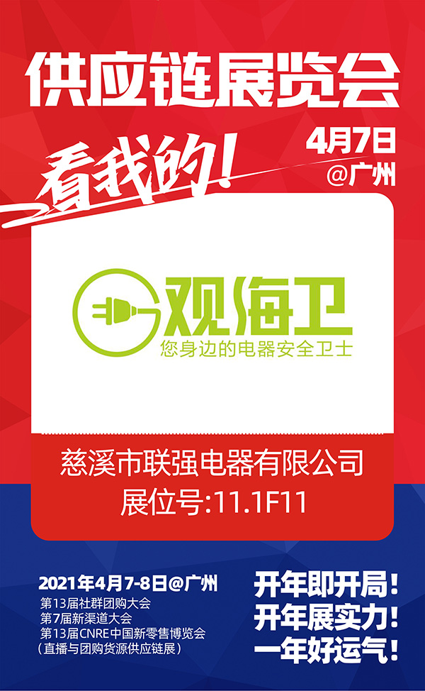 这是慈溪市联强电器有限公司第一次参加展会,旨在想认识更多的优秀企业与销售合作渠道,展会现场设立展位,邀请你来选品对接,2021开年展,广州见!展位号:11.1F11。