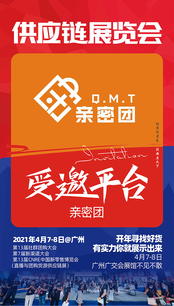 2021年开年第一展,以【新渠道,新机遇,新增长】为主题,组织更多的优秀的新渠道商、平台方、货源方、供应链、品牌方以及服务商汇聚广州,可以让平台面对面谈产品;供货商可以直接找到平台,推荐产品,亲密团诚邀供货商朋友带着产品来展位洽谈合作。