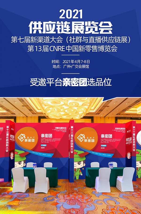 2021供应链展览会于4月7-8日,在广州广交会馆B区举办,同期举办平台选品对接会,由沸点天下创办,深受与会双方喜欢,亲密团受邀参加平台选品对接会。