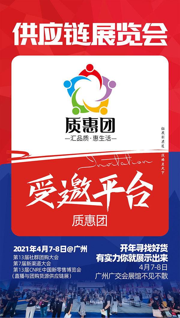 2021供应链展览会于4月7-8日,在广州广交会馆B区举办,此次大会由沸点天下、沸点会展、4458货源网联合举办。活动同期举办平台选品对接会,可以面对面谈产品;供货商可以直接找到平台,推荐产品。质惠团受邀入驻平台选品对接会。