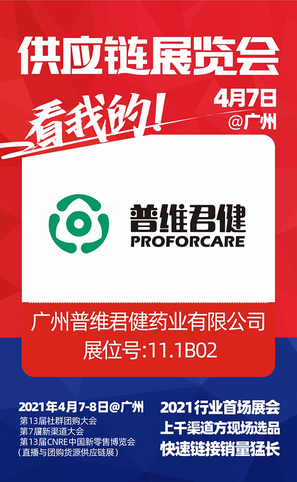 2021年4月7-8号,2021社群团购供应链开年展,广州普维君健药业有限公司与你相约广州广交会馆,不见不散。
