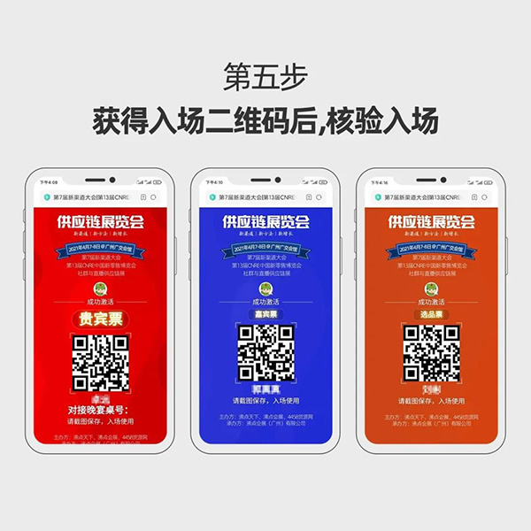 4月7-8日,广州供应链展览会暨社群团购选品会,入场二维码生成步骤(针对已购票的嘉宾、贵宾、参展商、资源对接的社群与直播头部平台)。