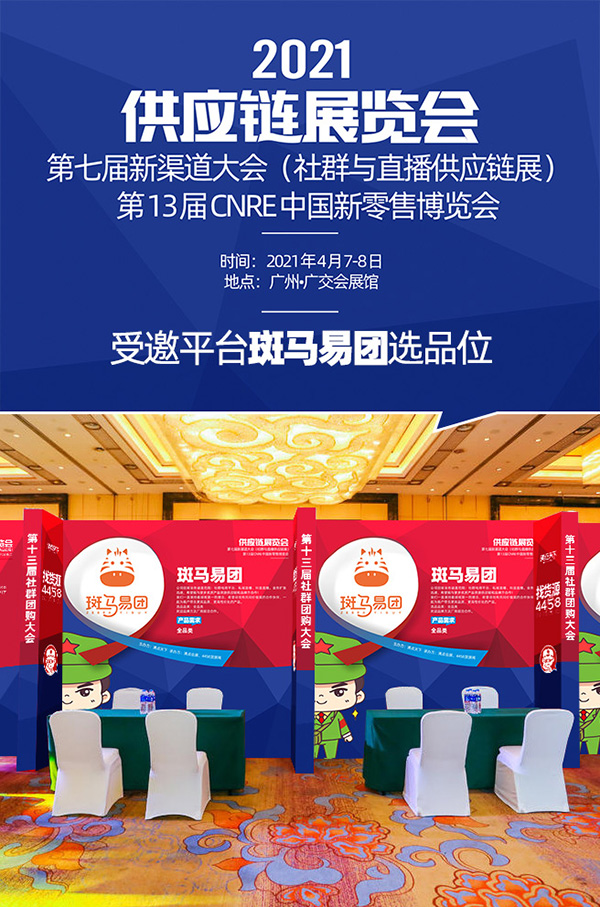 2021供应链展览会,现场采购选品,嘉宾分享干货,现场对接,学习交流,都能满足您的需求,斑马易团诚邀供货商朋友带着产品来展位洽谈合作。
