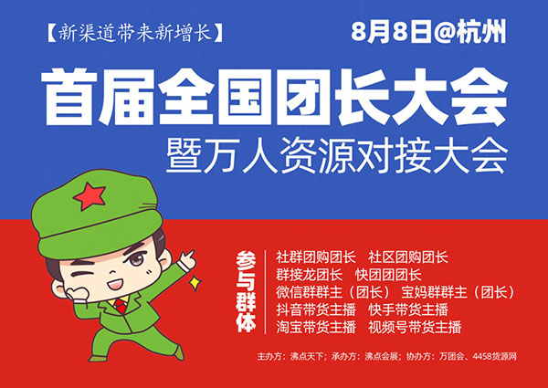 作为新零售创新者、以及新零售风向标的沸点天下,每推出一个新项目、新活动就被人追着抄袭、模仿!今天(2021年6月9日),沸点天下将助力团长增长,帮助货源方拓展更多渠道,发起首届全国团长大会!立贴或截图,“全国团长大会”是沸点天下创立的!2021年8月8日在杭州新渠道展期间举办!