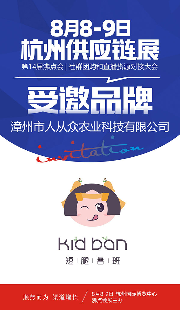 2021年8月8-9号,8月8杭州一件代发货源展,漳州市人从众农业科技有限公司与你相约杭州国际博览中心,不见不散。