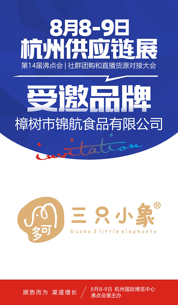 这是樟树锦航食品有限公司第二次参加沸点活动,2021年8月8-9号,8月8杭州一件代发货源展,樟树锦航食品有限公司与你相约杭州国际博览中心,不见不散。