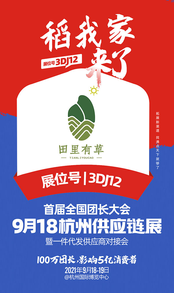 2021年9月18日,由沸点天下发起,沸点会展主办的第14届沸点会暨社群团购与直播选品会在杭州国际博览中心举办!同期举办首届全国团购团长大会一件代发货源供应链对接会,来自全国的社群团购平台、快团团、群接龙明星团长受邀参加!深圳市稻我家农贸科技有限公司“田里有草”鲜食玉米受邀即将参加此次展会!