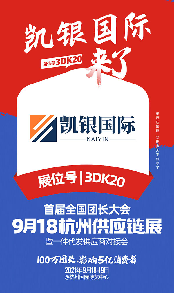 这是凯银国际供应链首次参加沸点活动,希望通过沸点内业号召力,认识更多更专业的团长和同行精英,同时也让更多同行或团长认识凯银国际。如果您对凯银国际有兴趣,9月18日-19日,请去杭州国际博览中心3DK20展位前进行详细咨询,凯银国际全体员工期待您的光临!