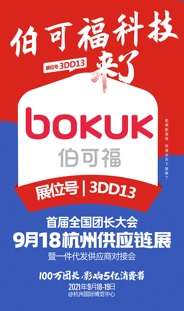首届全国团长大会9月18号在杭州国际博览中心举办,有3个展馆,30000平展览面积,分别是爆品馆、轻奢馆、好物馆,是行业规模最大影响力最大的活动。届时,伯可福科技(佛山市)有限公司将重磅来袭!