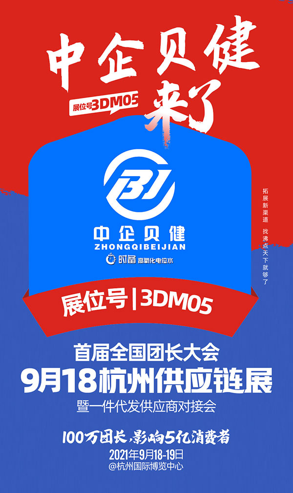 中企贝健健康科技有限公司推出第五代消毒液,时备高氧化电位水,想通过沸点活动对接各大平台和团队。9月18-19号,杭州一件代发货源对接会,中企贝健健康科技有限公司与你相约杭州国际博览中心3DM05展位,不见不散!