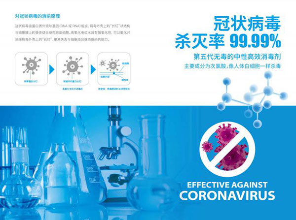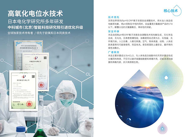 2020年针对突发其来的冠状病毒疫情,将高氧化电位水送检到广州权威检测机构检验结果:高氧化电位水可作为空气专用消毒使用。高氧化电位水对粘膜无刺激,可入眼,可经口的同时,对冠状病毒杀灭率高达99.99%以上。在空气中喷洒,硬质物体表面喷洒,衣物上喷洒,有效阻碍病毒的传播。还集装箱出口到日本在连锁药妆店内销售,受到了国内外的高度认可和好评。